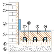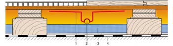 1. Ειδικές λαμέλες μετάδοσης θέρμανσης 2. Σωλήνας Profitherm 20mm 3. Μόνωση πάχους 5cm με φύλλο αλουμινίου 4. Φύλλο ΡΕ – Φράγμα υγρασίας |