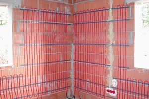Αρχή της Θέρμανσης Ψύξης Τοίχου ERGON είναι η διάστρωση κρυφών κυκλωμάτων σωληνώσεων στον τοίχο, μέσα στα οποία κυκλοφορεί ζεστό νερό που προέρχεται από θερμαντική μονάδα το χειμώνα και κρύο νερό που παράγεται από ψυκτική μονάδα το καλοκαίρι.